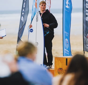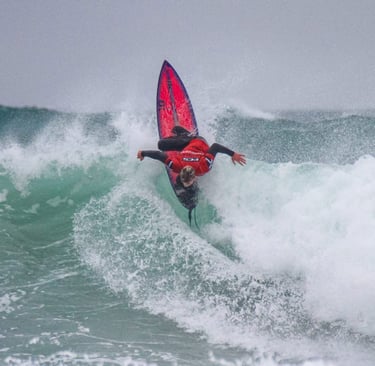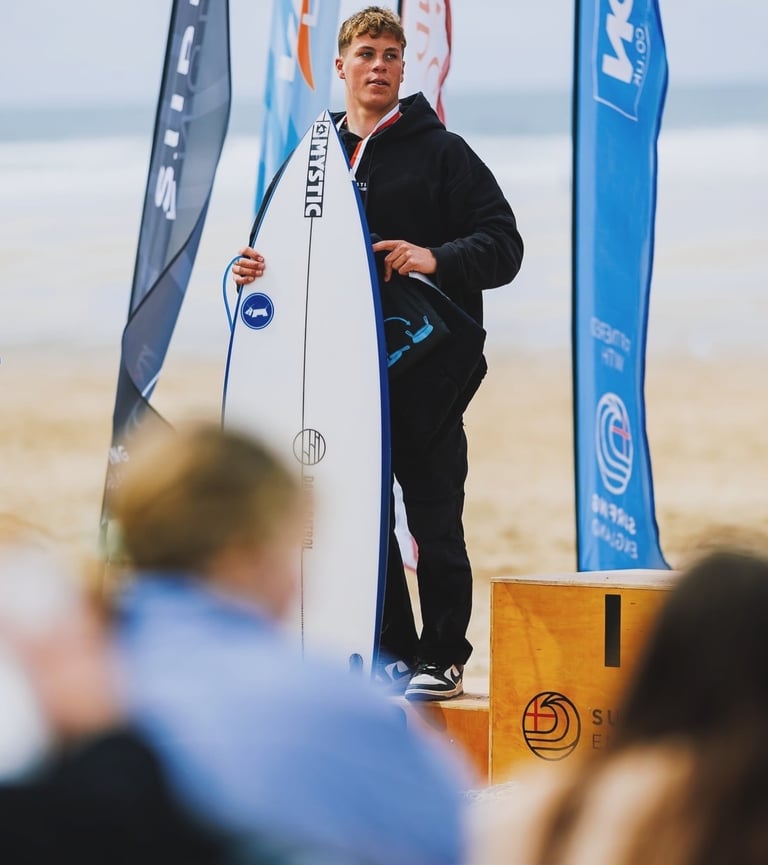 I'm an 19-year-old professional surfer, currently competing on the international stage representing England. Surfing has been my life from a young age, and I’m proud to be supported by some incredible sponsors who believe in my journey. My long-term goals are to qualify for the Olympics, make the World Tour, and push myself in big, heavy waves . Thanks to the support of my sponsors, I’m able to travel across Europe and compete on the WSL Junior Tour — gaining valuable experience and developing my competitive edge.