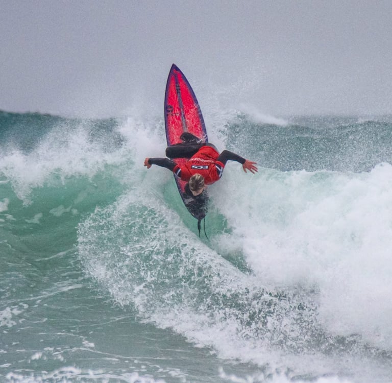 Surfing has been my life from a young age, and I’m proud to be supported by some incredible sponsors who believe in my journey. My long-term goals are to qualify for the Olympics, make the World Tour, and push myself in big, heavy waves . Thanks to the support of my sponsors, I’m able to travel across Europe and compete on the WSL Junior Tour — gaining valuable experience and developing my competitive edge.